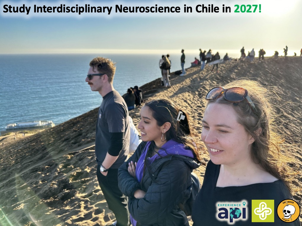 In 2027 we'll return to Valparaíso, Chile, home of the Humboldt squid! 🦑⚡️🧠🎨😃 Just like in 2025, and 2023, we'll explore how neurons carry information, and how research in Chile (involving the squid’s giant fused axons) informed our understanding of the electrical signaling that links our experiences to the world. We’ll visit laboratories to examine the rich history and exciting present of research at the Universidad de Chile en Valparaíso, make art (including arpilleras, woven depictions of experience that help people express challenging memories and preserve them for accountability), and contribute to community engagement with Ciencia al Tiro, a local STEAM (STEM + Arts) outreach nonprofit.
