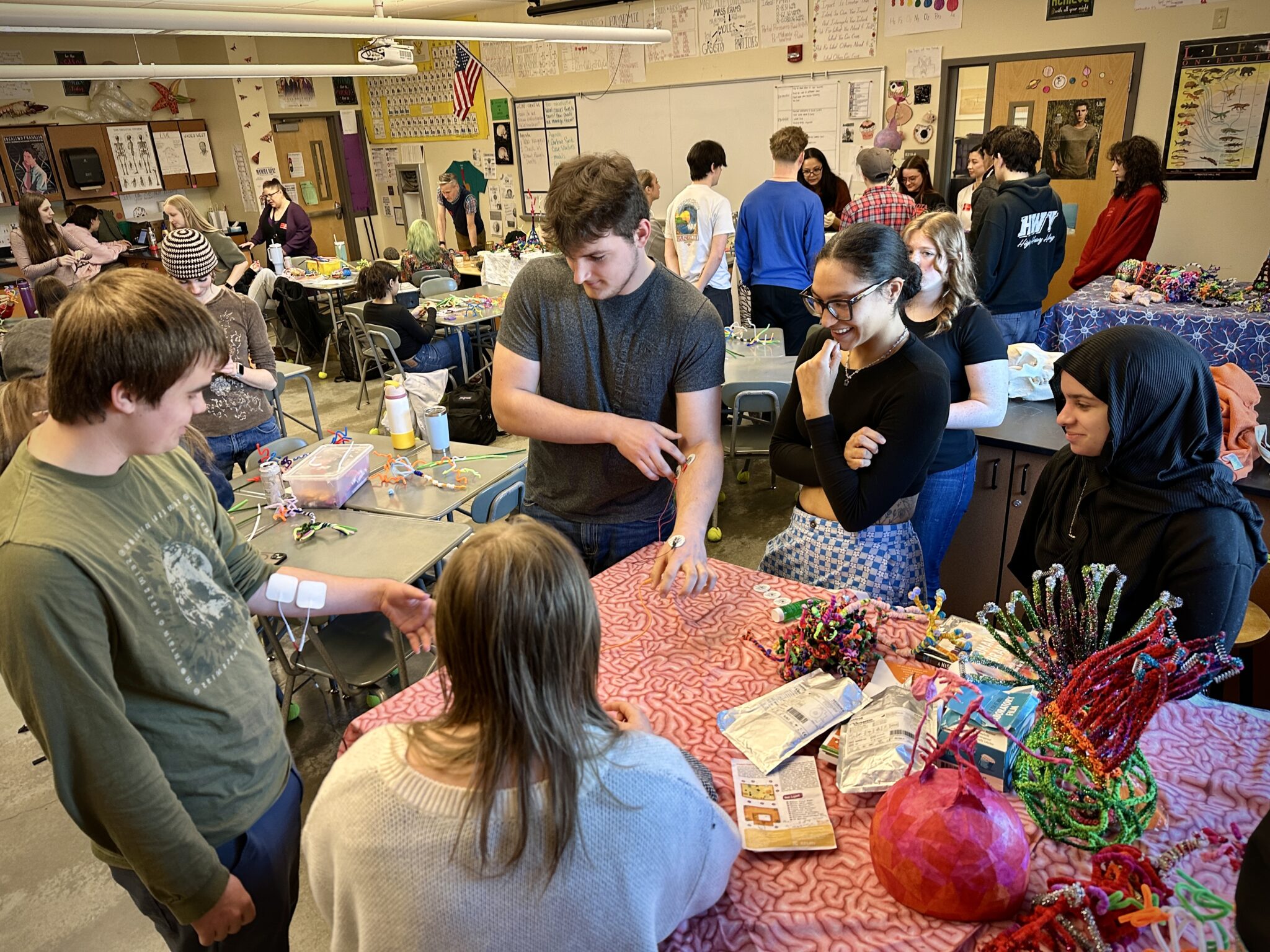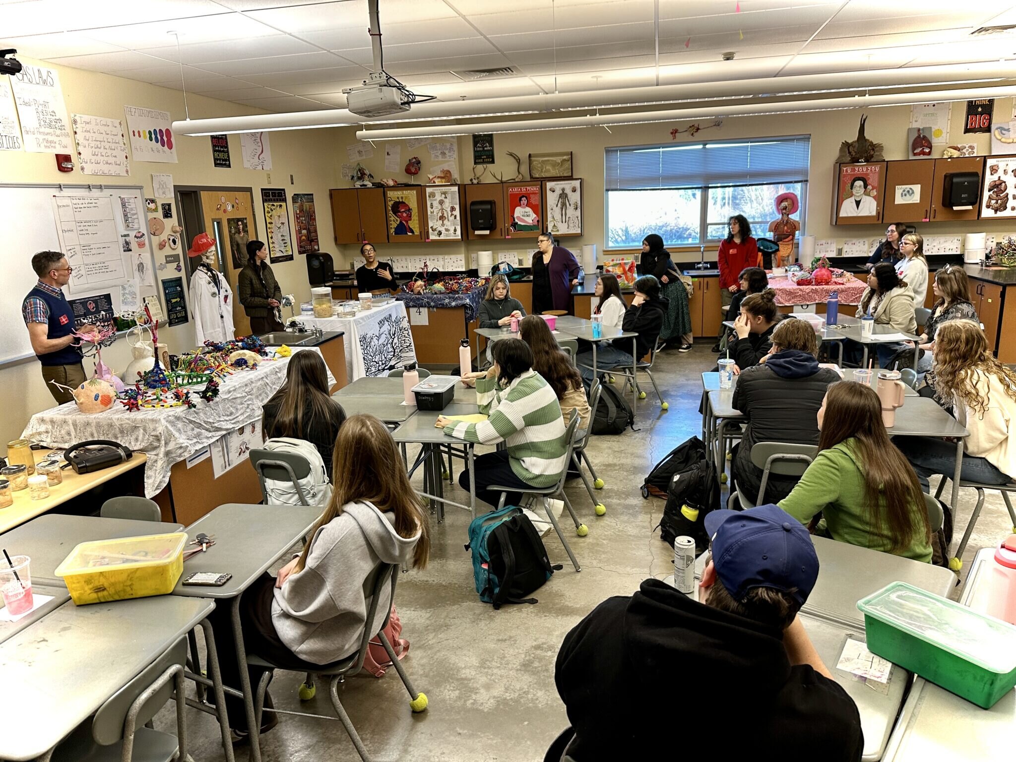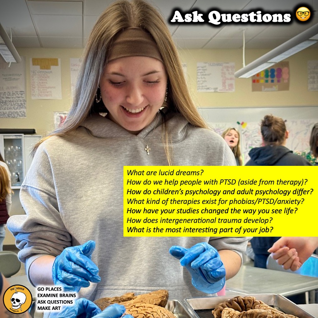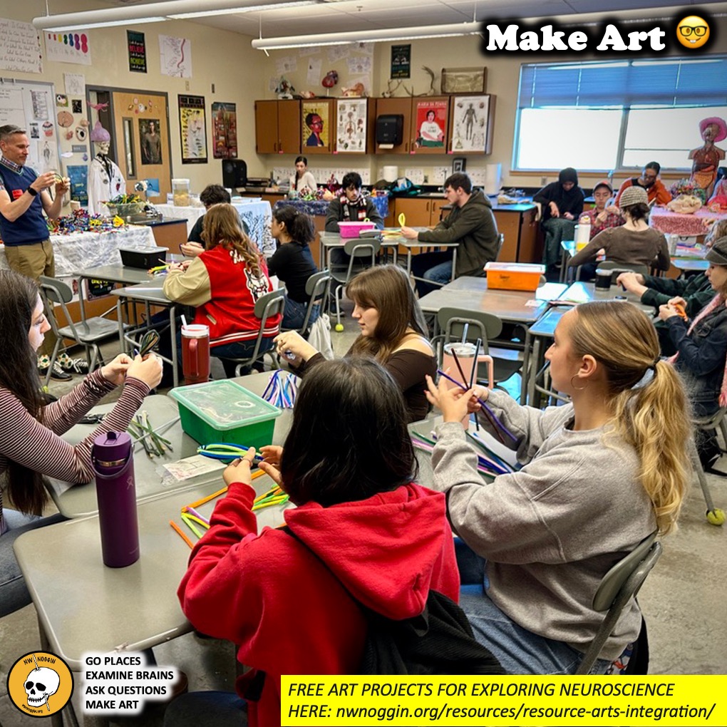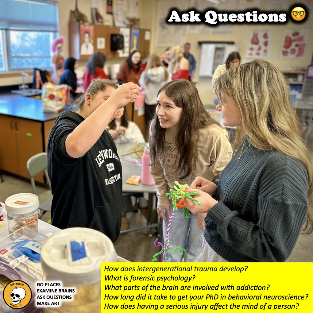 We’ll join high school students studying science and anatomy in multiple classes at Oregon City High School to talk brain research, make art, and consider questions!