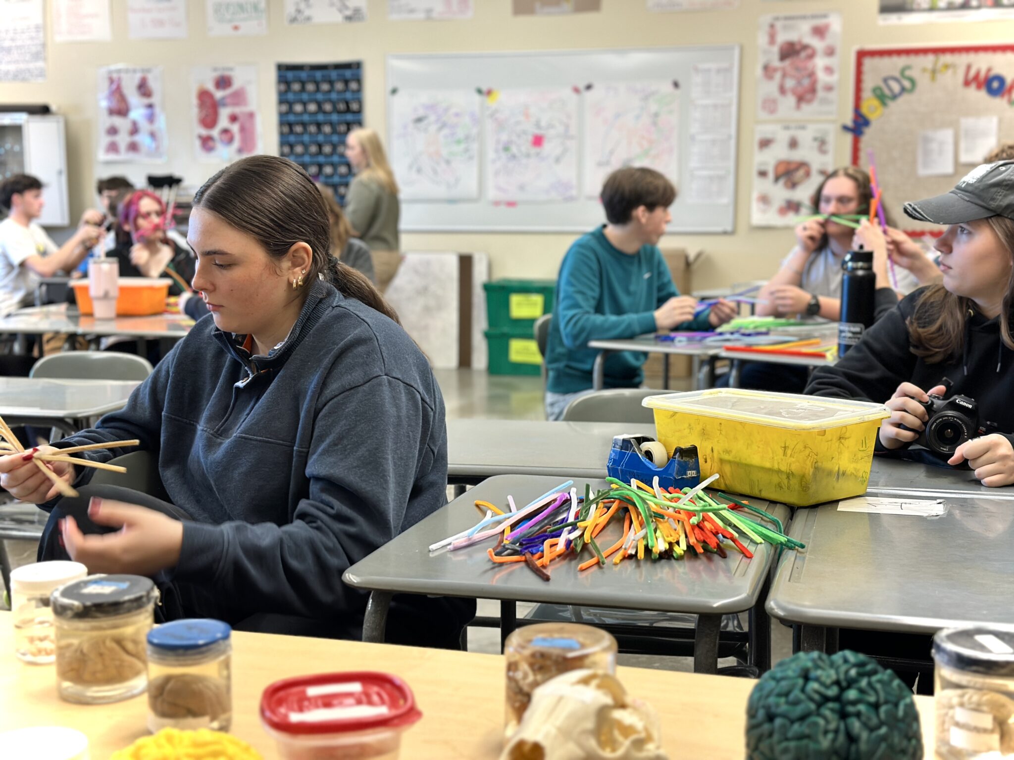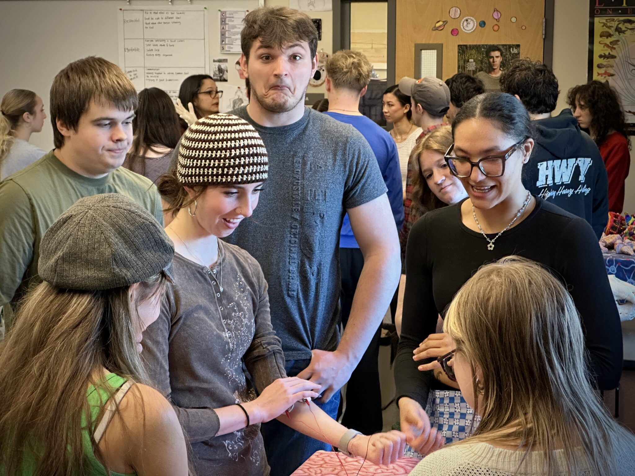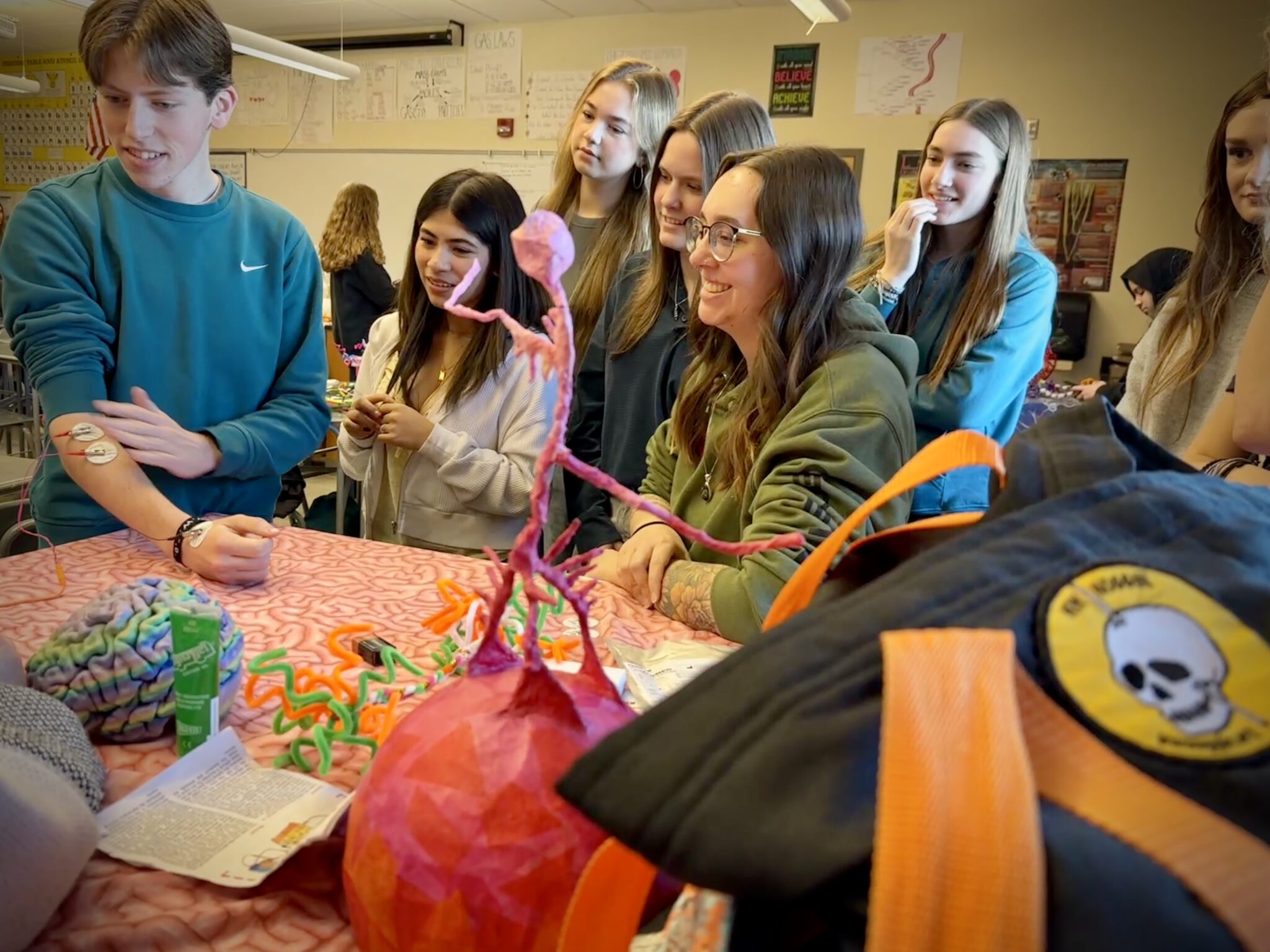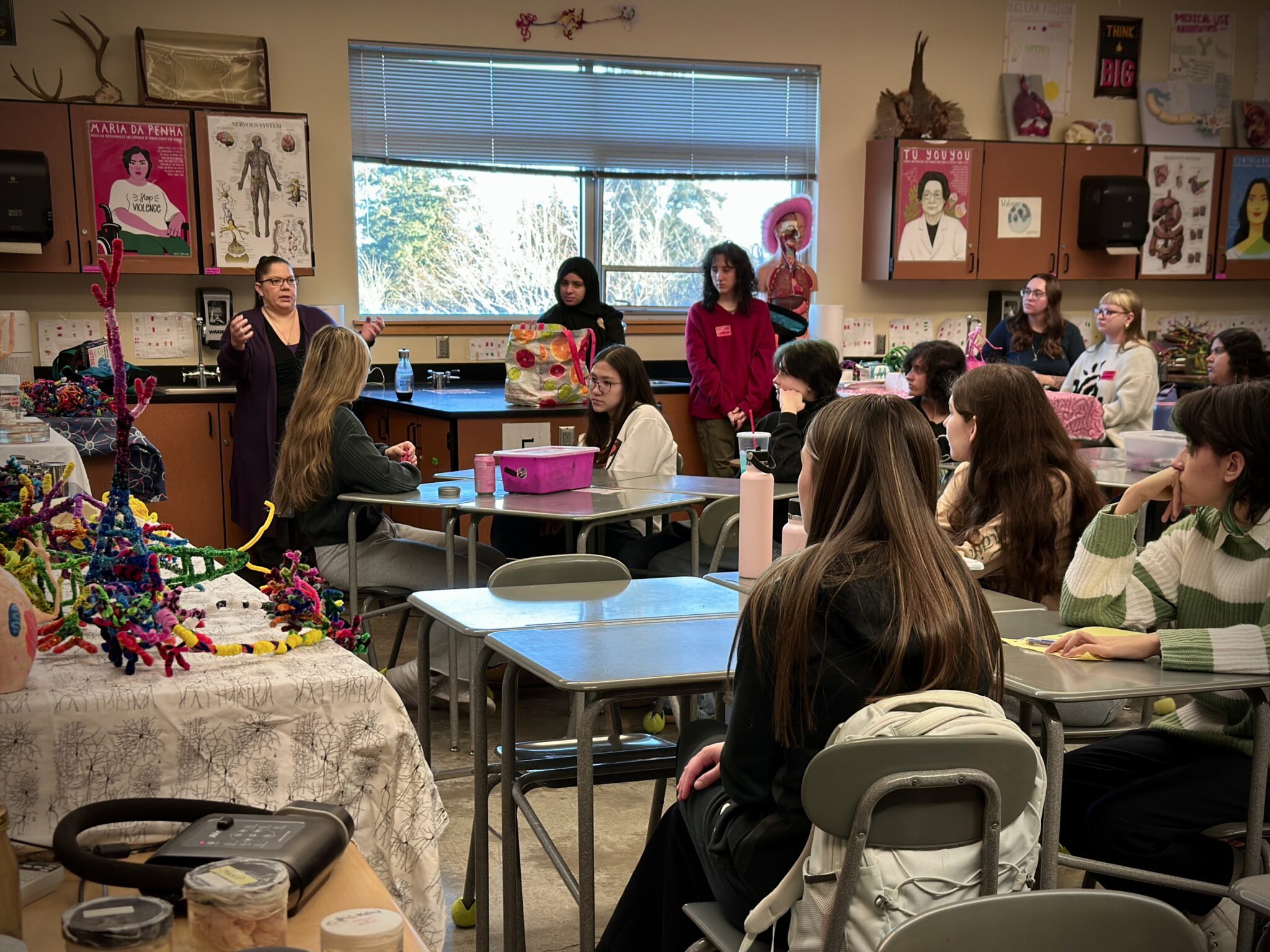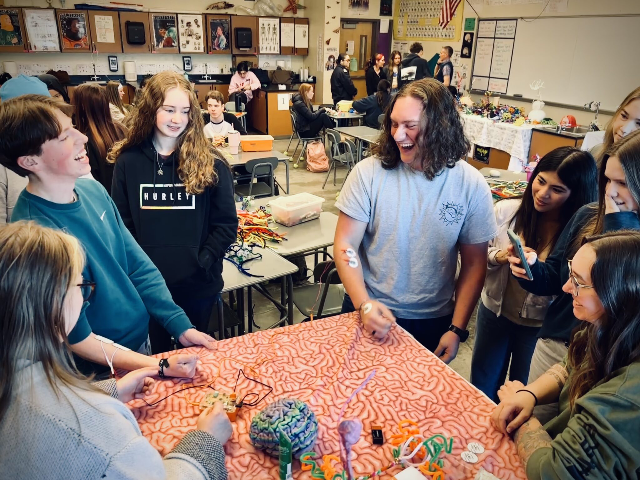 We’ll join high school students studying science and anatomy in multiple classes at Oregon City High School to talk brain research, make art, and consider questions!