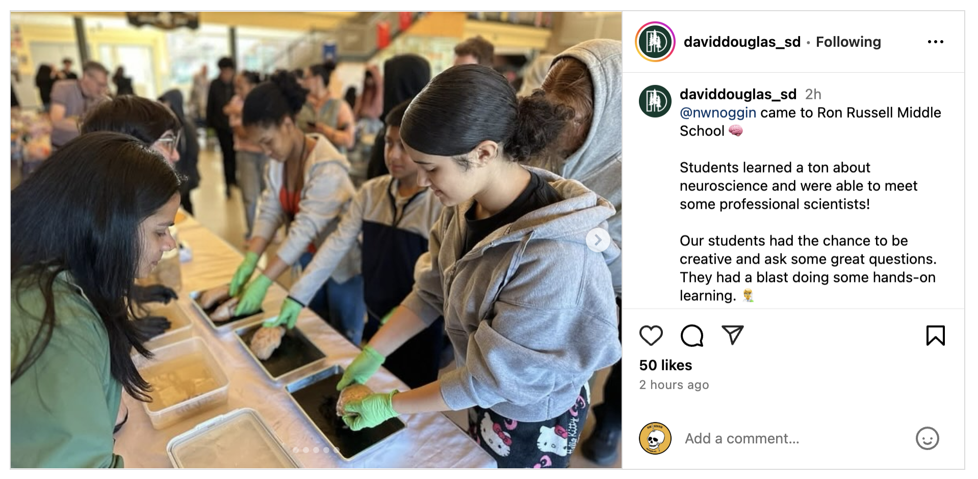 Noggin volunteers from Portland State UniversityOHSU and other area campuses will meet with 6th and 8th graders in this David Douglas District public middle school, to explore neuroscience research and make art related to understanding our brains.